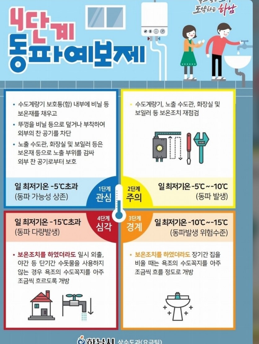 하남시정소식 중 수도계량기동파예방안내입니다.